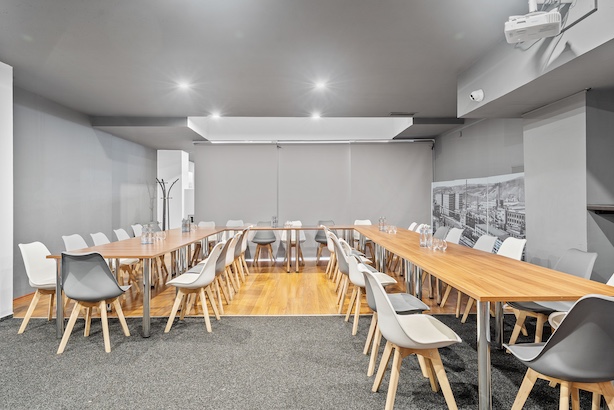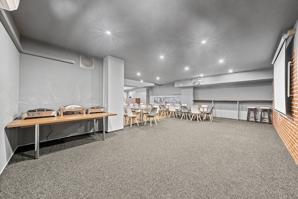 Máme pro Vás připravený velký salónek pro cca 50 osob, který je oddělen od zbylé části restaurace k poskytnutí soukromí elektrickými rolety. Salónek můžete využít k rodinným oslavám, svatbě, firemním školením, jednání, vánočním večírkům nebo rozlučce se svobodou. Interiér salónku je stejně jako zbytek restaurace laděn do stylu starého "Baťovského" Zlína s červenými cihličky doplněnými šedou a bílou barvou v kombinaci se dřevem. Salónek je klimatizovaný, a vybaven data projektorem s plátnem. Na přání pro Vás připravíme raut, občerstvení na stoly nebo hlavní jídlo.